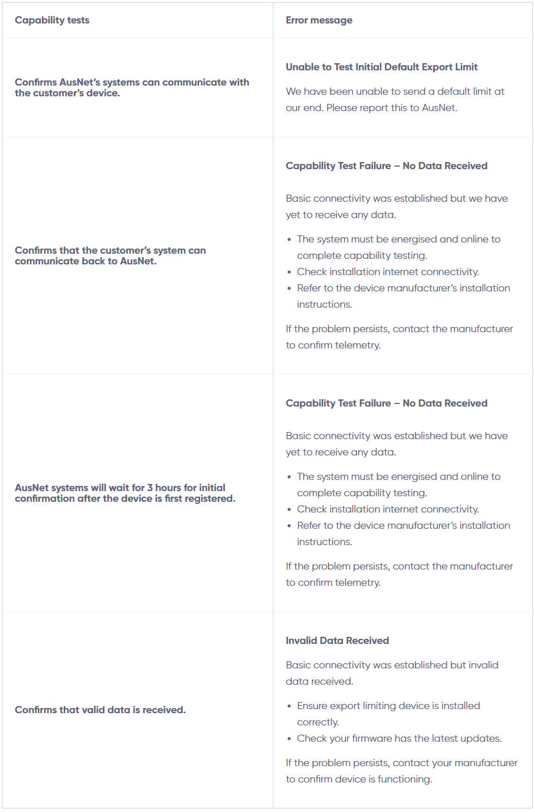 AusNet allow up to a week to complete all capability tests. In this instance, due to factors beyond AusNet's control, the tests haven’t been completed within the allowed timeframe.