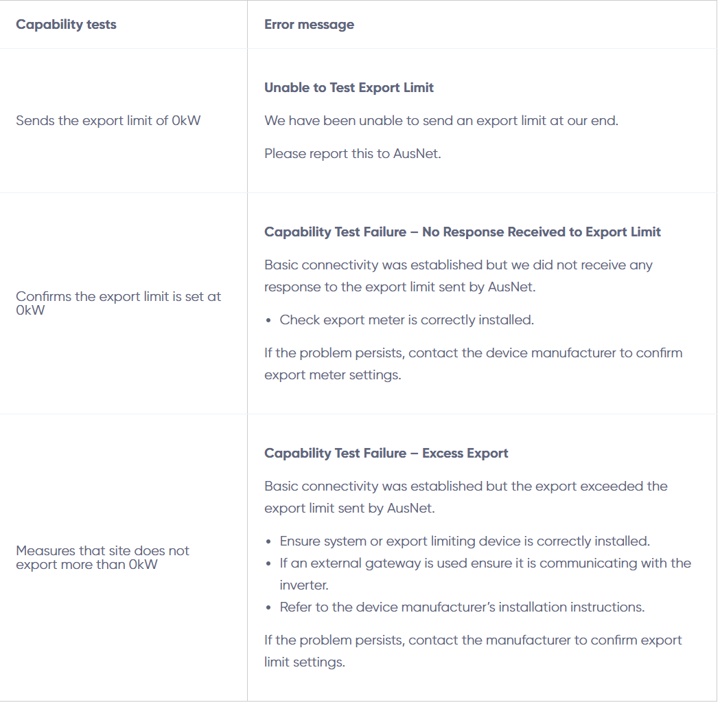 - Ensure 1.25kW export to complete tests. In ideal conditions, a test should complete in a 30-minute window.